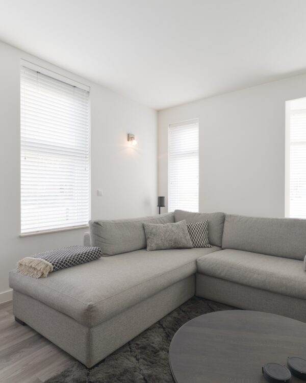 In vele keuzes die gemaakt zijn, hebben ze het advies van Arno overgenomen. Zo hebben ze gekozen voor houten jaloezieën van ons eigen Thuisin merk met een lamel breedte van 50mm. De gordijnen zijn van Kendix Mizu en hangen aan een Interstil gordijnrails. De lichte houten jaloezieën maken de ruimte nog groter. En zeg nou zelf, met brede houten jaloezieën geef je net iets meer pit aan de kamer. De transparante gordijnen kleden de kamer net iets meer aan.