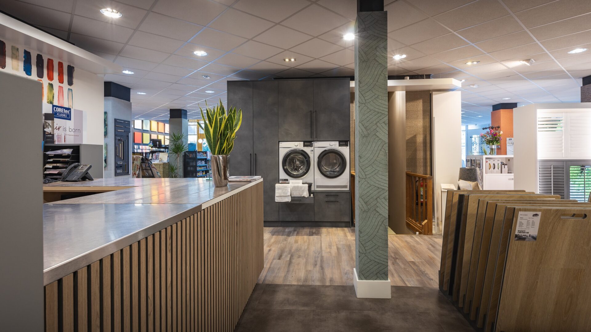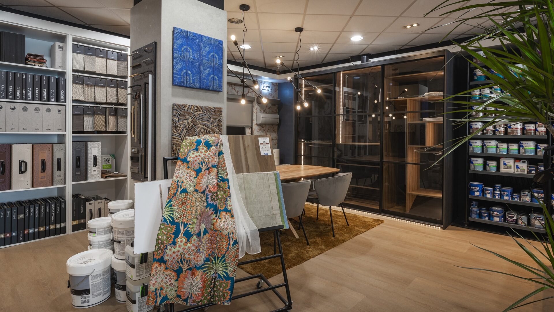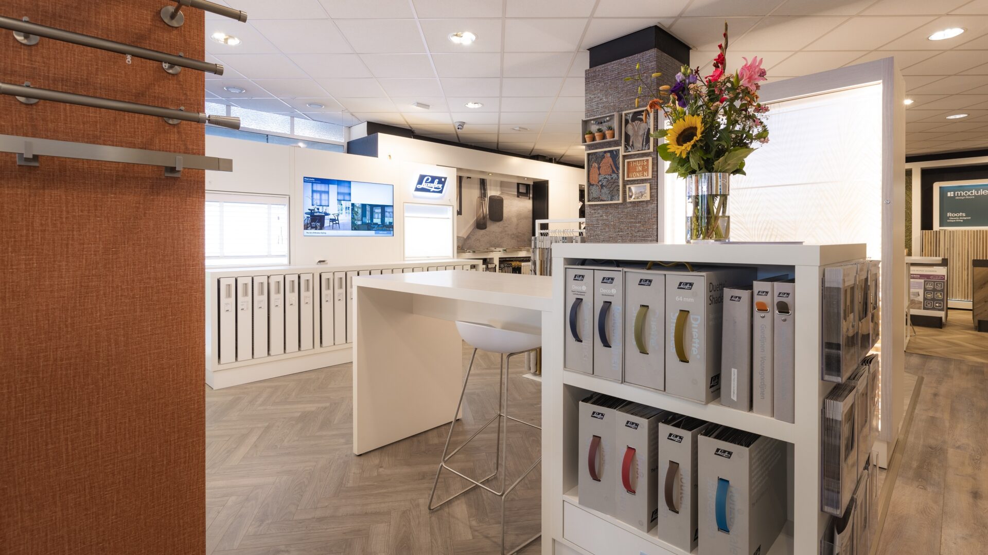 Laat je in de showroom verrassen door ons uitgebreide assortiment van goede merken als Luxaflex®, Moduleo en Akzo Nobel. Wij helpen je graag met advies, ook voor een kast op maat. Onze vakmensen komen graag je nieuwe vloer leggen of jouw gordijnen inmeten en ophangen.